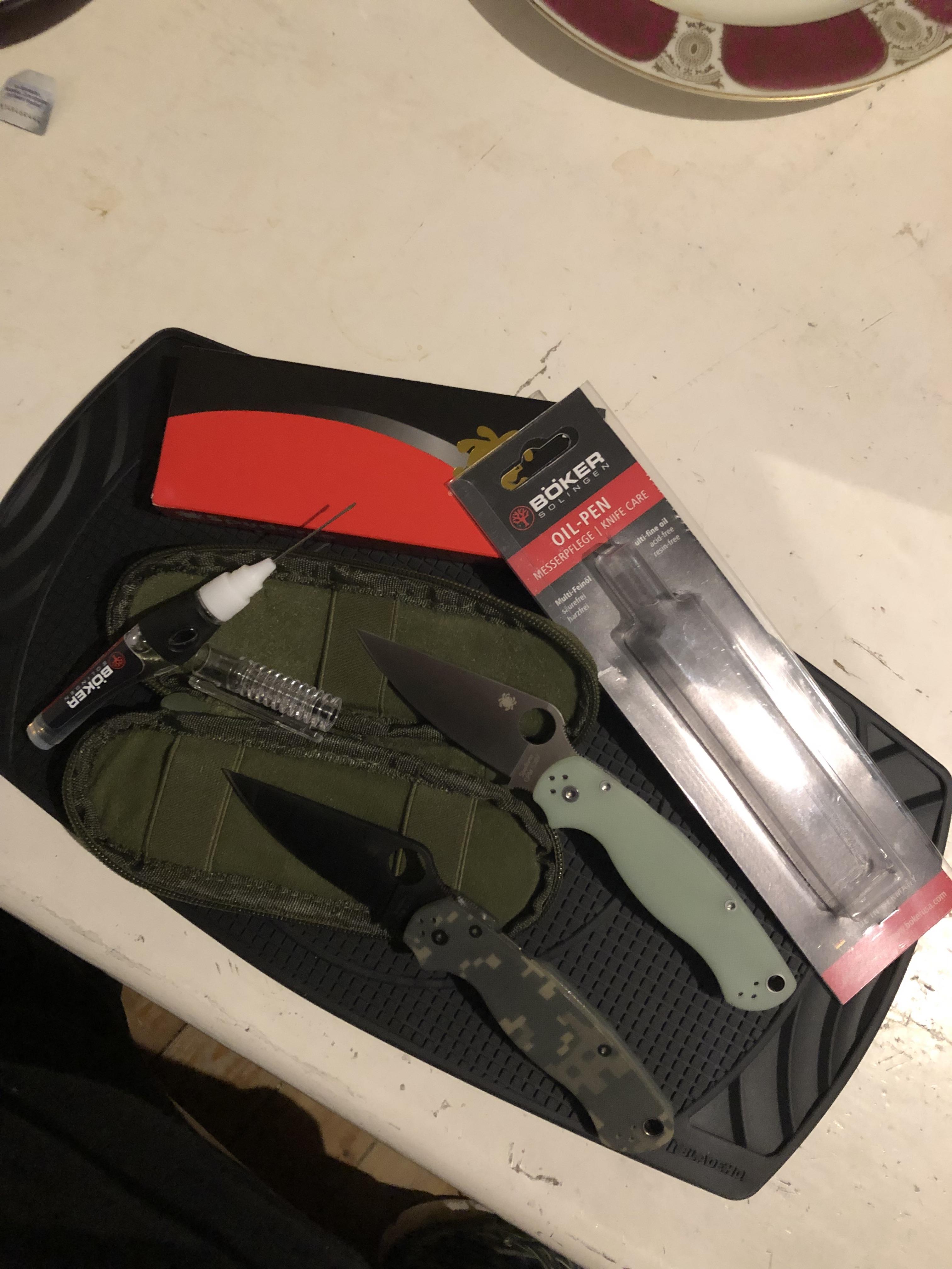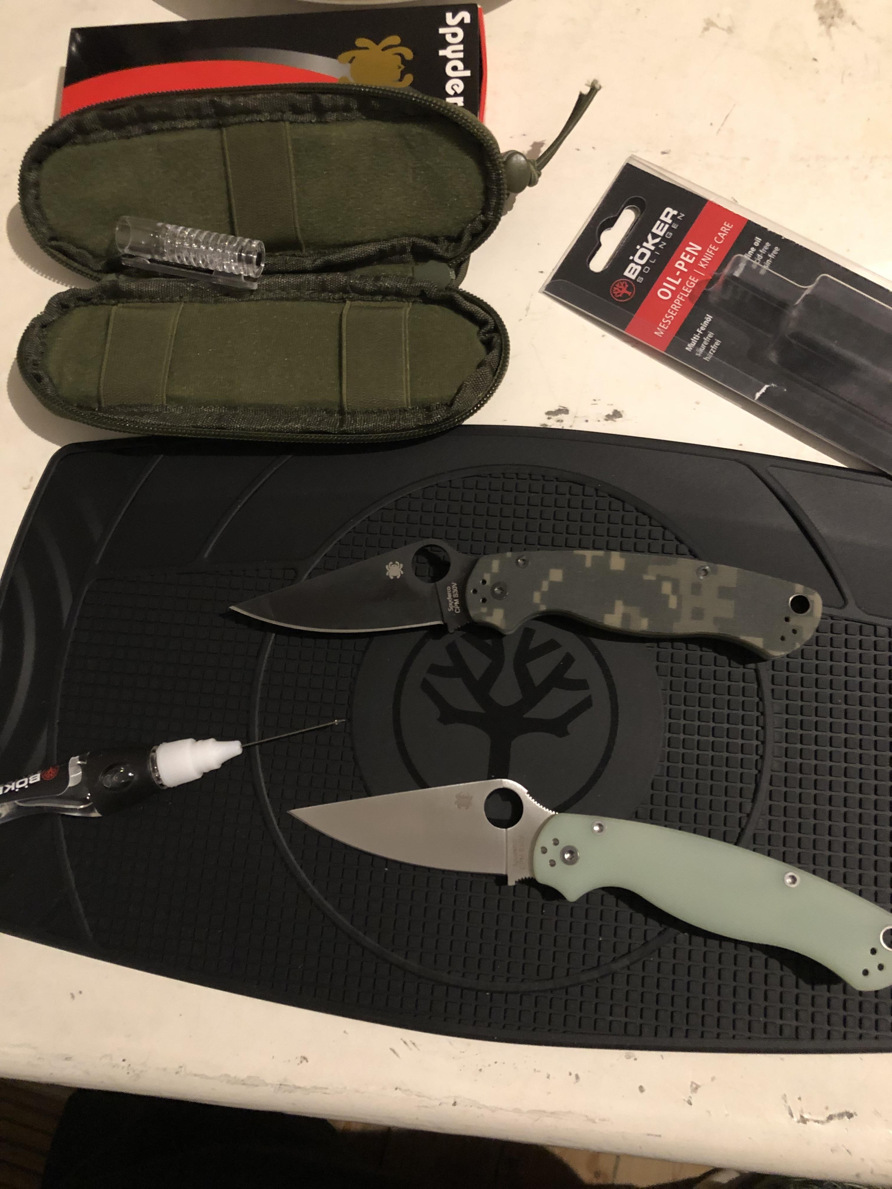 earl66 Geschrieben Dezember 24, 2024 at 22:21 Geschrieben Dezember 24, 2024 at 22:21 Ganz ehrlich … ich habe die super Gummi- Unterlage, Messertasche und den Öl- PEN von meiner Frau gekriegt! Die beiden Spyderco, Para Militär 2, sind bei Egun ersteigert (das Jade farbene für 123€, das andere 113€) … das schwierigste und risikoreiche war die Echtheit zu bestimmen … da hab ich echt dazu gelernt! Sind beide echt und tolle Messer! Die KHS … von Kleinanzeigen für 85€. Batterien sind bestellt … noch leuchtet gar nix und natürlich läuft die noch nicht! Hat einen kleinen Kratzer in der mattschwarzen Beschichtung. Ich versuche das mal mit kalt brünieren! Sachen gebraucht kaufen und wieder herstellen ist das größte! Das macht mir echt Spaß! Ich hoffe die leuchtet mit Batterie! Ich dachte erst das läuft mit anstrahlen! Aber ich glaube das muss mit Batterie! Die sind Freitag da … 6,99€ für 20 Batterien … bei Amazon … Basteln und Restaurierung ist das … vor lauter Spaß gleich gedoppelt …! 😅👍🤗