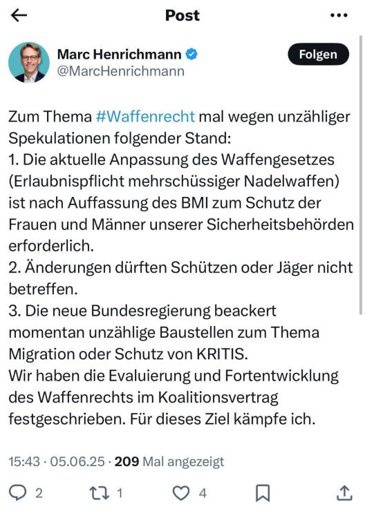 Gab es nicht einmal Gerüchte wegen dem kleinen Waffenerwerbsschein bzw. Schreckschusswaffen? Dort konnte evt. die Schrauben angezogen werden. Kann mich natürlich auch irren und was kommt bei scharfen Waffen etc.